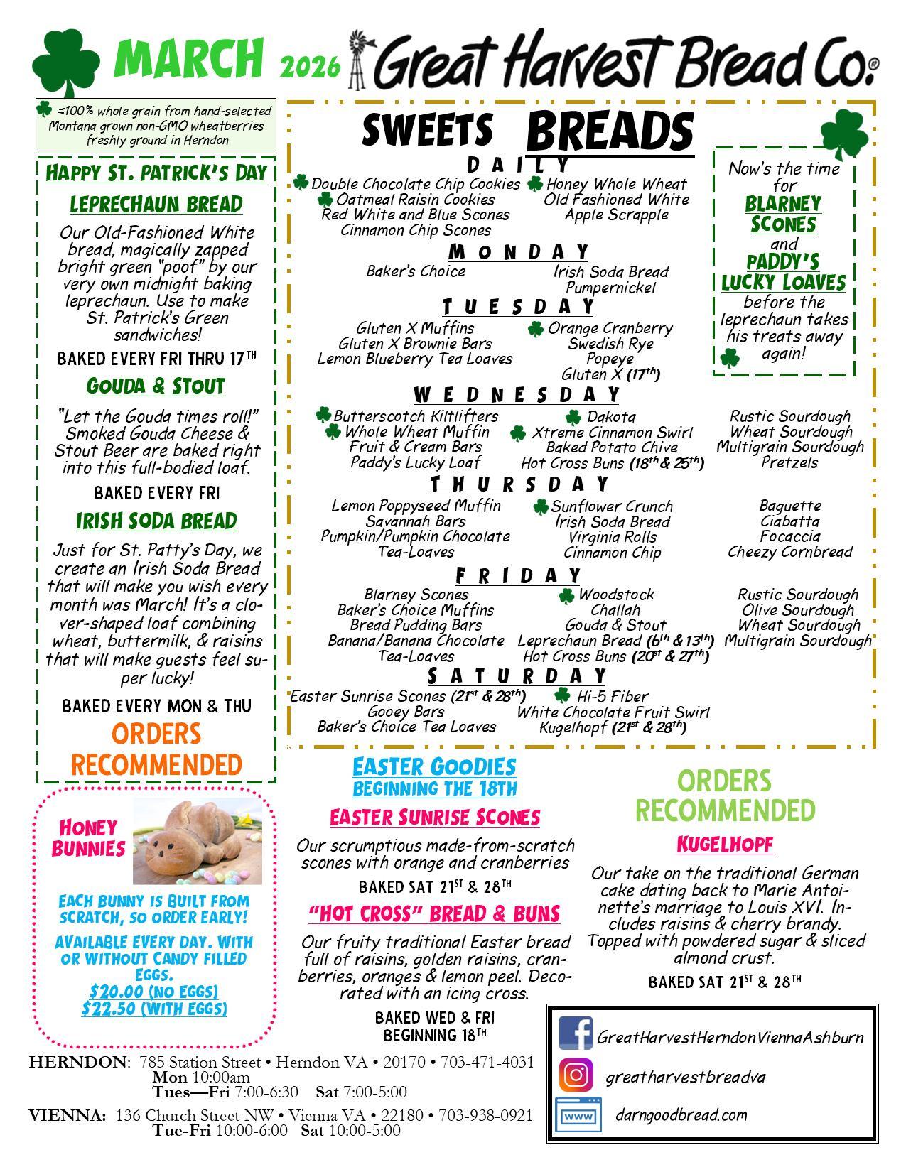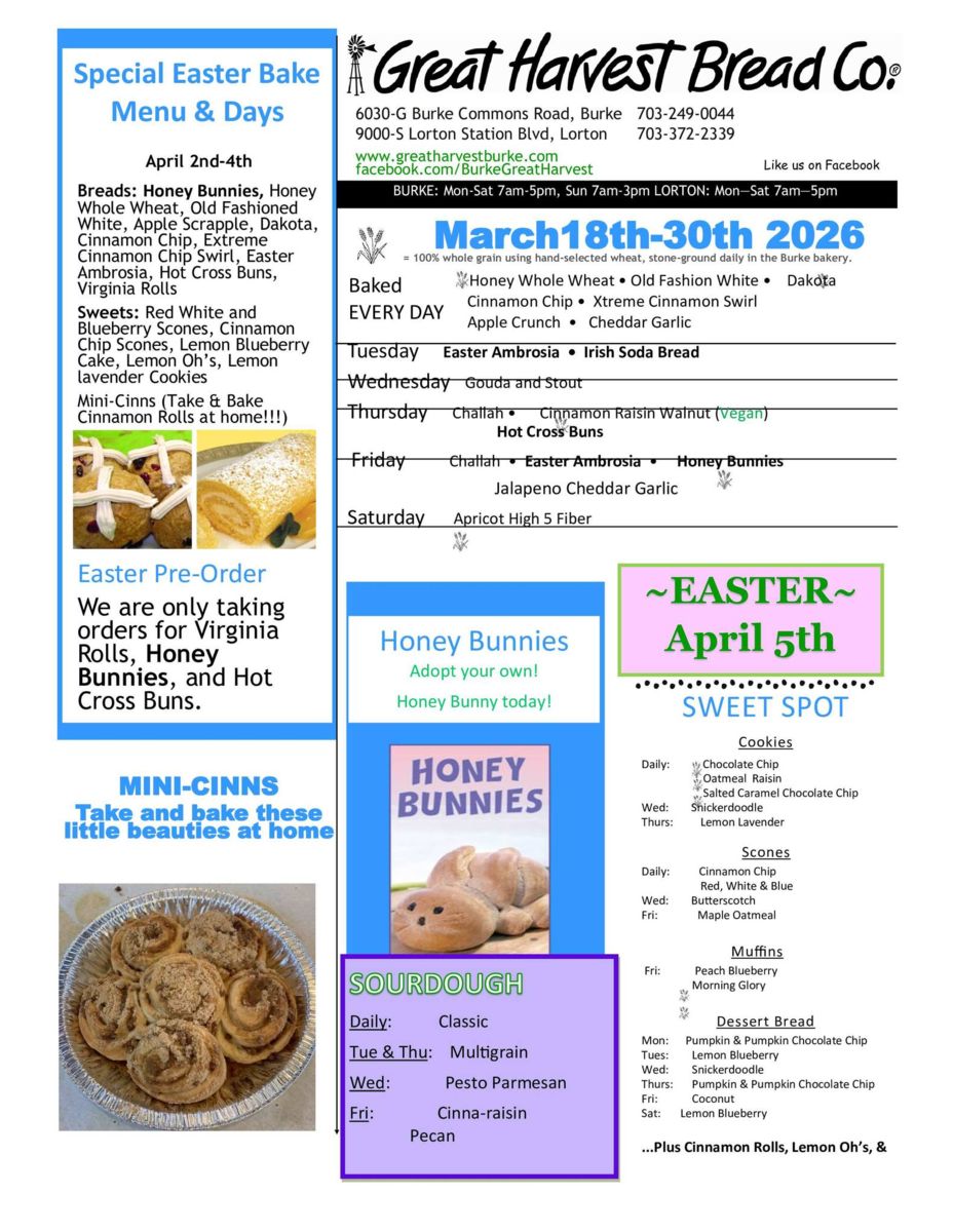 At our Burke location, you’ll find sandwiches made with simple ingredients for breakfast and lunch. Enjoy fresh, made-from-scratch bread, scones, cookies, muffins, and daily-baked sweets, accompanied by our signature music selection.